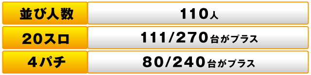 しかしながら、その他の台が伸びを欠き、240台中80台がプラスだったものの、トータルの差玉数は-33,550発と、マイナスに終わってしまった。