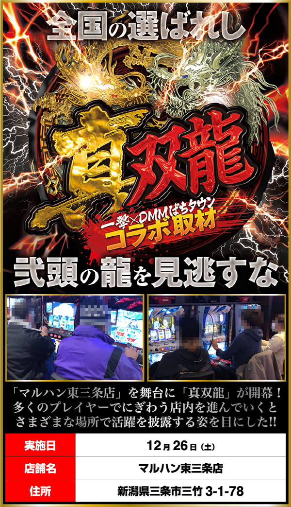 「マルハン東三条店」を舞台に「真双龍」をおこなった。
