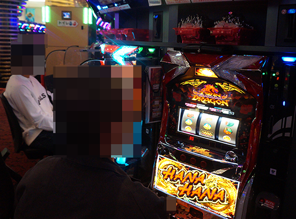 稼働率が高い機種はほかにもあったが、プレイヤーが披露する華麗なパフォーマンスによって、「ツインドラゴンハナハナ-30」の存在感がバツグン。