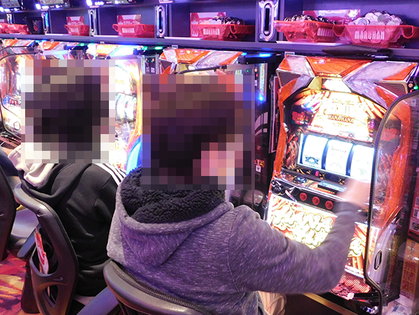 店内ではプレイヤーたちが楽しそうに遊技をおこなっており、パチンコとパチスロの両方が華やかなムード。