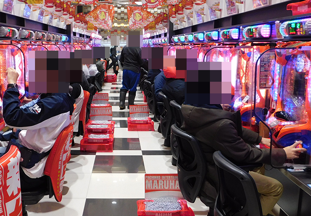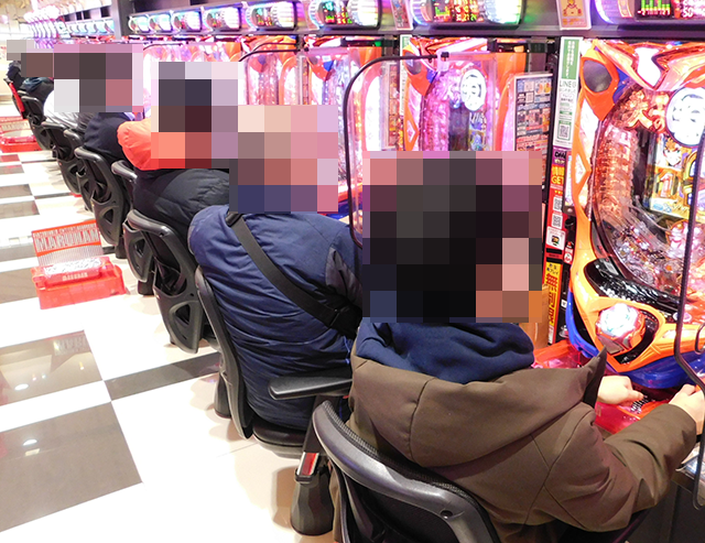 フローリングがピカピカに拭かれ、明るい空間となっていたパチンココーナーでは、さまざまな機種が人気。長く愛され続けているシリーズ機から導入されたばかりの新機種にいたるまで、随所で楽しげなプレイヤーを目にしている。