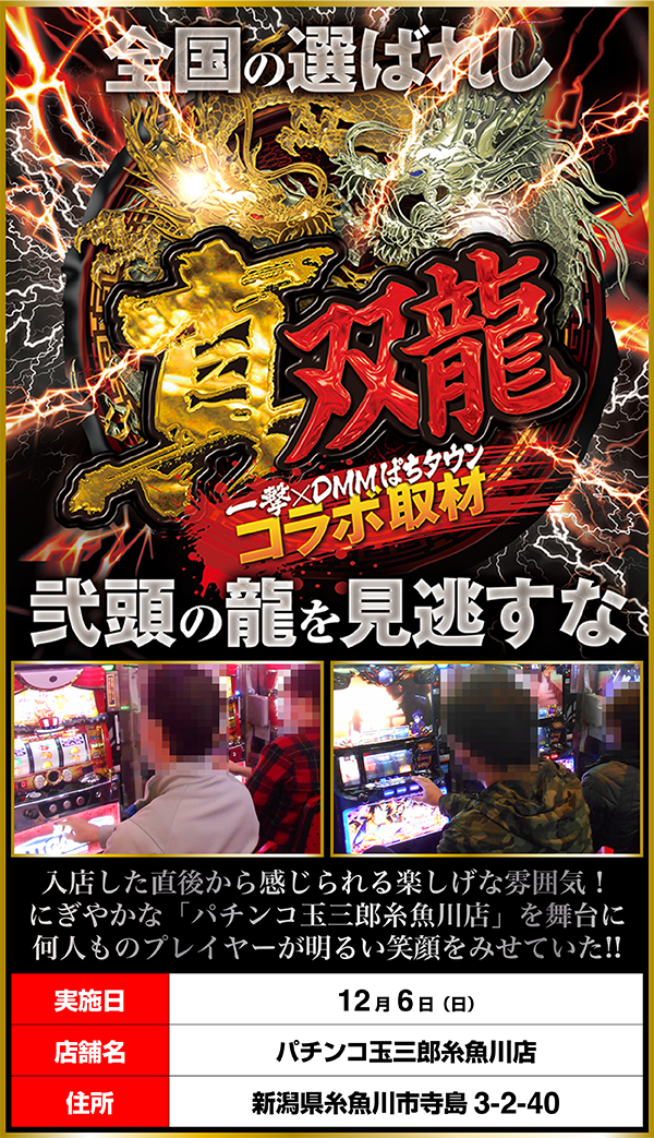 「パチンコ玉三郎糸魚川店」を舞台に「真双龍」を実施した。