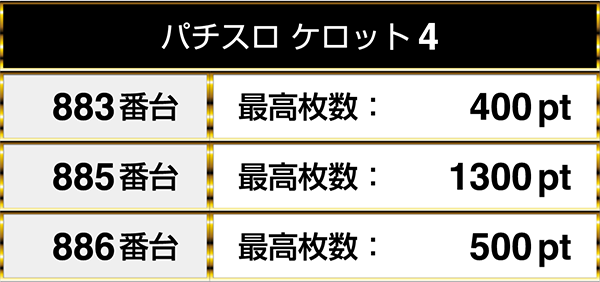 『パチスロ ケロット4』は設置されている3台すべてがプラスptとなり、1台は1300ptを記録した。