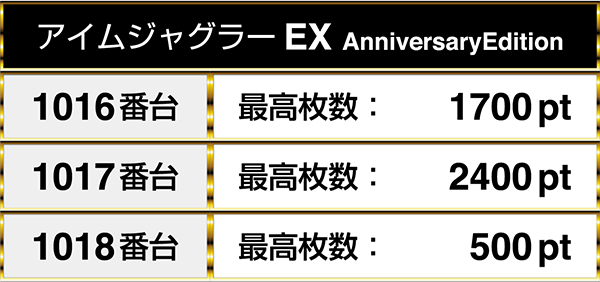 『アイムジャグラーEX AnniversaryEdition』に1700pt、2400pt、500ptが連なる!!