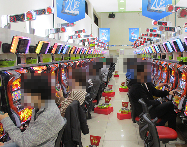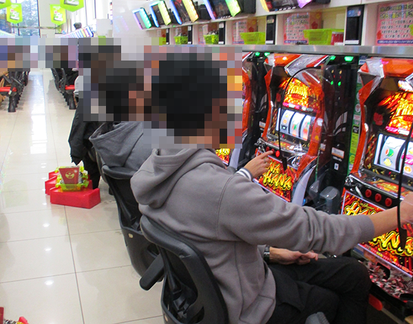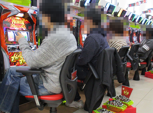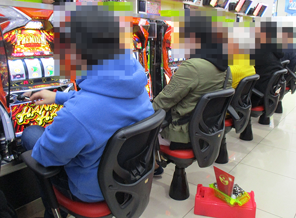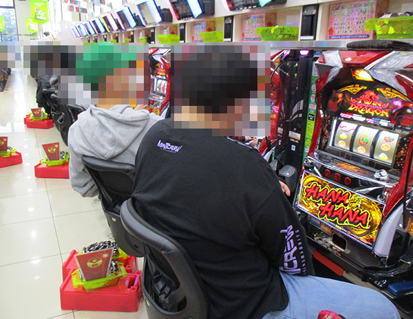 14時頃の「プレミアムハナハナ-30」は12台中8台が稼働。プレイヤーひとりひとりのパフォーマンスが際立っていた。