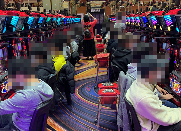 パチンコでも、「ぱちんこCR真・北斗無双」や「Pとある魔術の禁書目録」など、多数の機種が高稼働。遊技を満喫しているといった姿がズラリと並び、にぎやかな状況となっていた。