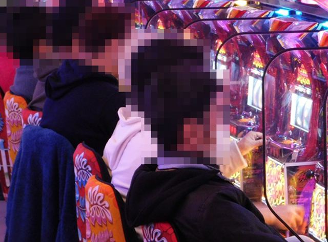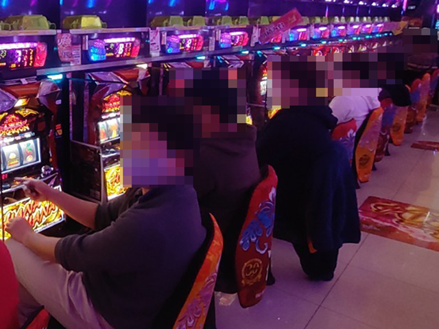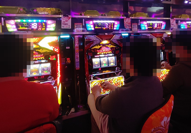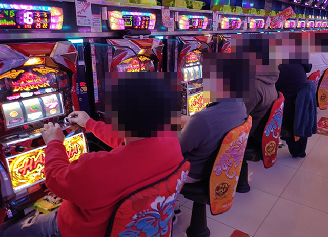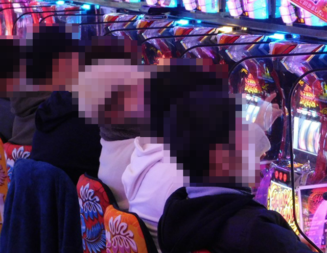 16時頃の店内はパチスロを中心に活気づいており、さまざまな場所でプレイヤーがパフォーマンスを披露していた。