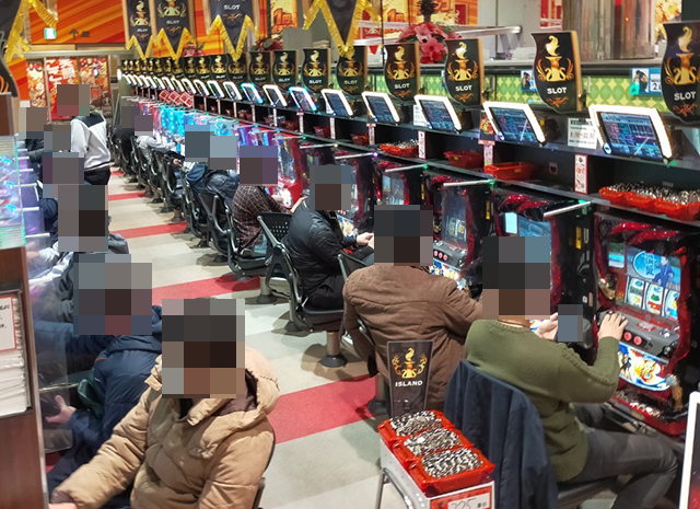 連なる龍の存在を探るべく、舞台となる栃木県佐野市の「アイランド佐野店」をまわっていると、パチスロコーナーの随所からにぎわいが感じられた。