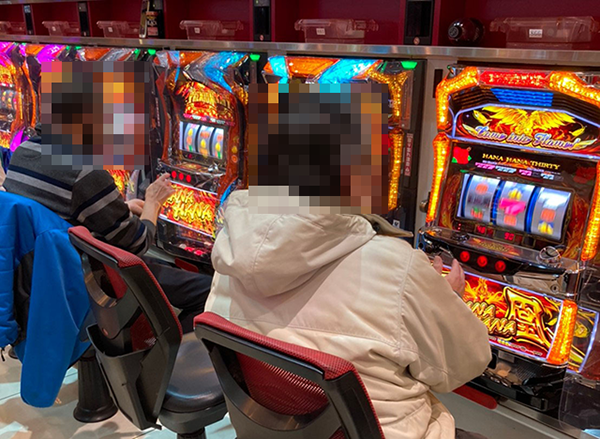 また、「ハナハナ鳳凰-30」でも楽しそうに遊技をおこなっている姿を目にした。