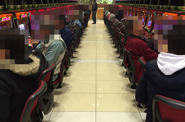 1円パチンコや0.5円パチンコといった低貸し玉コーナーも、海物語シリーズを中心に早くからにぎわいが大きい。
