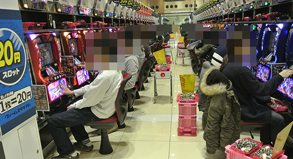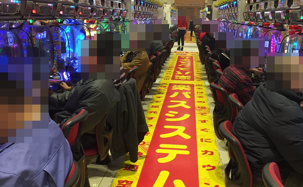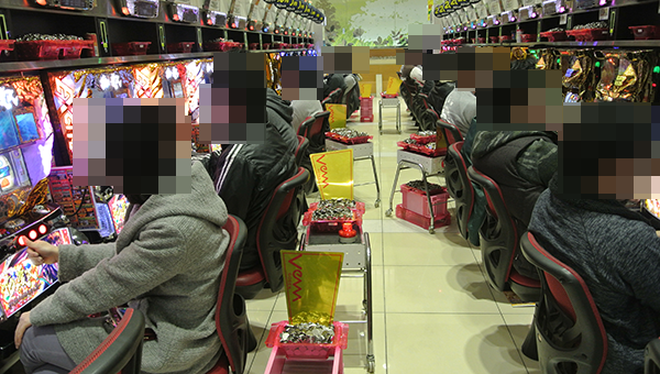 1円パチンコと0.5円パチンコにも空き台はほとんどみられず、パチンコ全体が大きな活気に包まれているように感じられた。