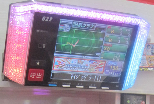 622番台の「マイジャグラーⅢ」にて、ボーナス合算確率が1/100を上回るデータもみつけた。