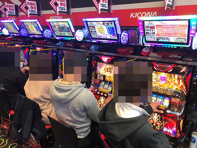 パチスロだけでも500台以上あり、パチンコとあわせると1200台を超える遊技台が設置されている「キコーナ加古川店」。広々とした店内のさまざまな場所で、遊技を満喫しているような姿を確認している。