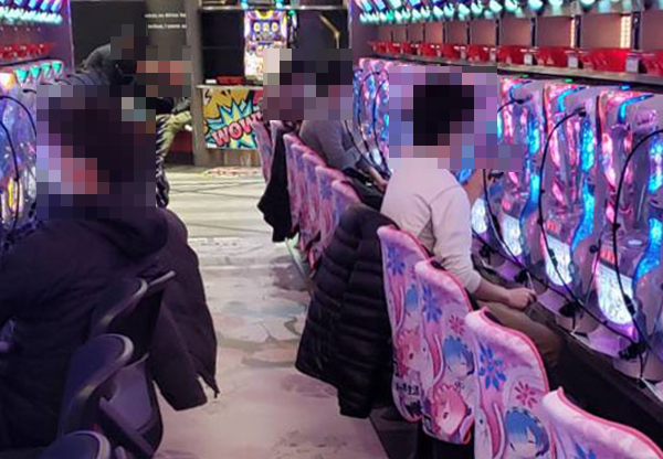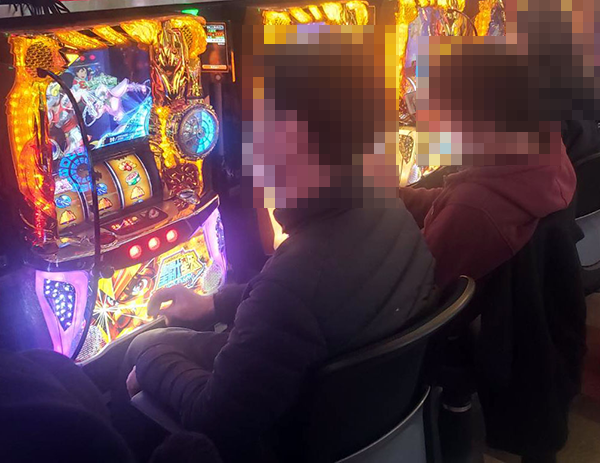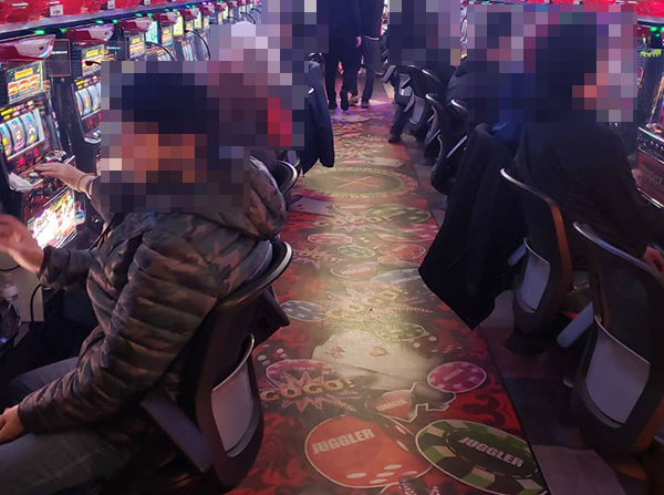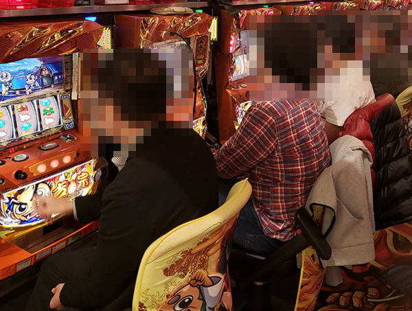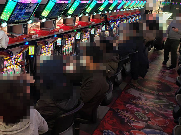 16時半ごろには、稼働が控えめだった末尾4が動きだすも、挙動が悪い台もあるようで、すぐにやめてしまう姿も。