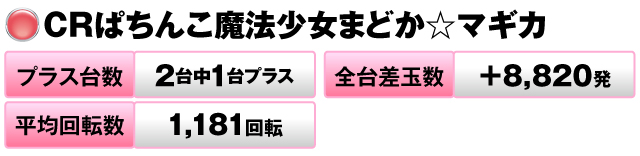 2台中1台がプラスで全台差玉数は+8,820発だった。