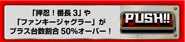 設置台数が10台を超える機種では、『押忍!番長3』と『ファンキージャグラー』が5割以上プラスであった。