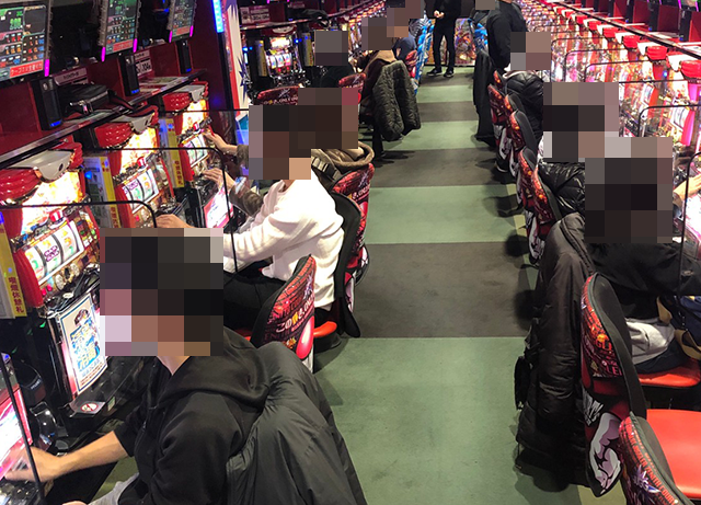 うれしそうに遊技をおこなう姿が何台にも連なっている状況は、とても魅力的。稼働率が高いことも含め、興味をひかれるポイントがいくつもあった。