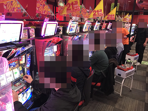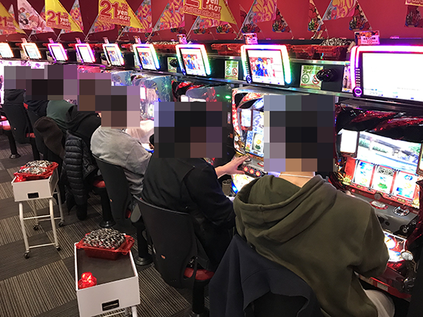 貸し玉料金を問わずに、イキイキとレバーを叩くプレイヤーを何人も確認。随所が笑顔で彩られており、ひとりひとりが遊技を満喫していることが伝わってきた。
