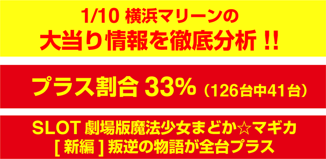 1月10日の「横浜マリーン」は、126台中41台がプラス。