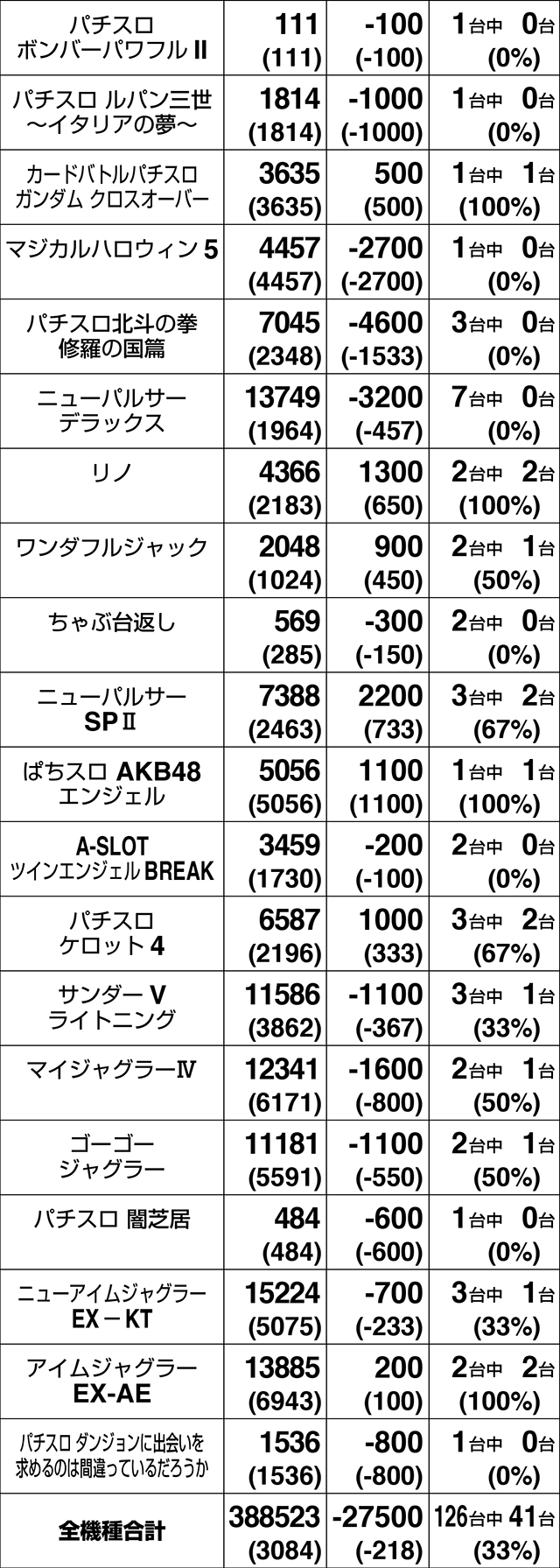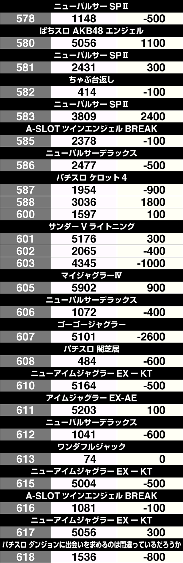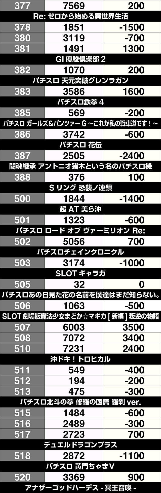 同じく3台設置の『ハイパーブラックジャック』や『パチスロ交響詩篇エウレカセブン3 HI-EVOLUTION ZERO』にも+3000ptを超える好調台を確認した。