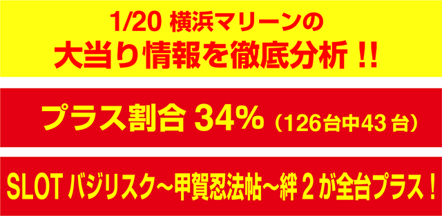 1月20日の「横浜マリーン」は、126台中43台がプラス。