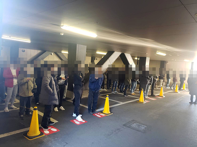 朝イチからおよそ100名のプレイヤーが集まっており、開店を心待ちにしているといった様子で整列していました。