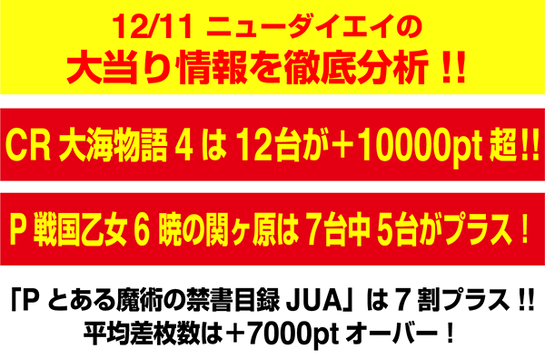 12月11日の日刊ぱちタウンでピックアップしたのは、500台以上の遊技台が設置されている「ニューダイエイ」。
