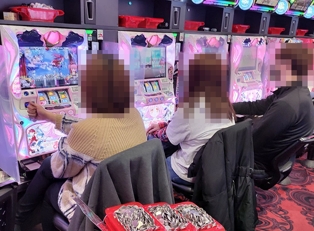 活気のあるシーンは『SLOT魔法少女まどか☆マギカ2』と『押忍!番長3』でもみられ、プレイヤーは心から遊技を楽しんでいるといった様子。