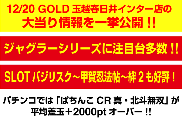 12月20日の日刊ぱちタウンは、「GOLD玉越春日井インター店」をピックアップ。