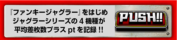 『ファンキージャグラー』は6台すべてがプラスで平均差枚数は+3300pt。