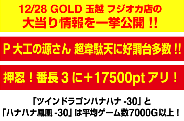 12月28日の日刊ぱちタウンは、「GOLD 玉越 フジオカ店」をピックアップ。