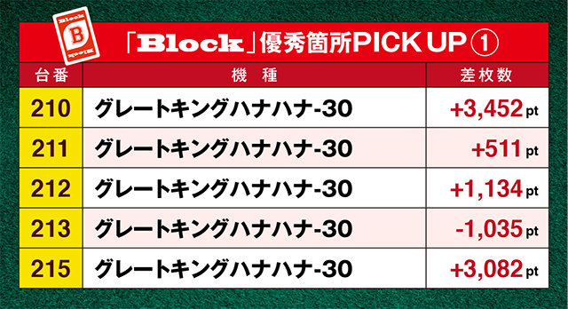 「グレートキングハナハナ-30」の210番台から212番台までの3台にプラスが固まる!!