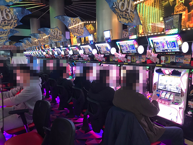 多くのお客さまが集まっている店内は明るいムード!! パチンコとパチスロの両方で、さまざまな機種が支持されていました。