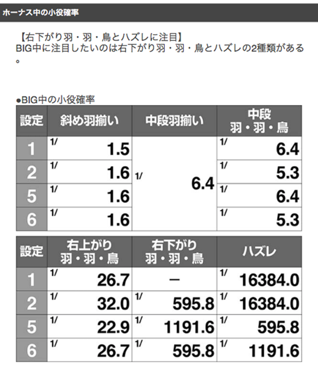BIG中におけるハズレ確率の設定差はとても大きく、1度でも確認すれば高設定に期待できる。