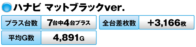 5台すべてがプラスで全台差枚数は+9,226枚、平均G数も8,320Gをマークした。