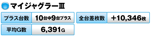 まず『Ⅲ』の方だが、10台中9台がプラスで全台差枚数は+10,346枚を記録した。