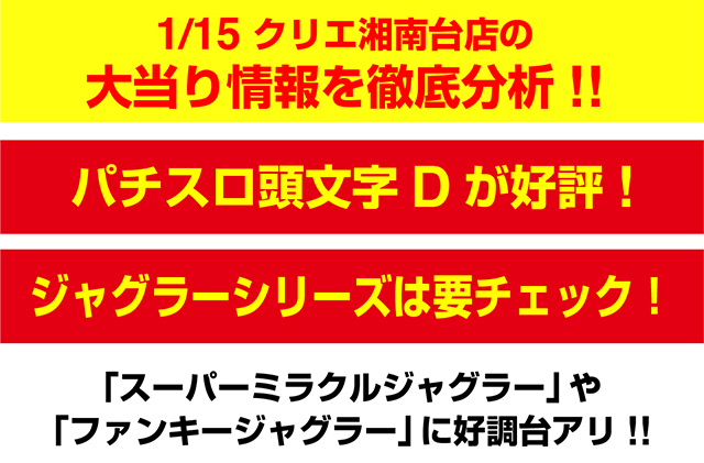 1月15日の日刊ぱちタウンは「クリエ湘南台店」をピックアップ。