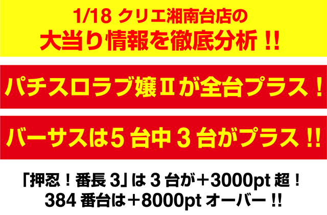 1月18日の日刊ぱちタウンは「クリエ湘南台店」をピックアップ。