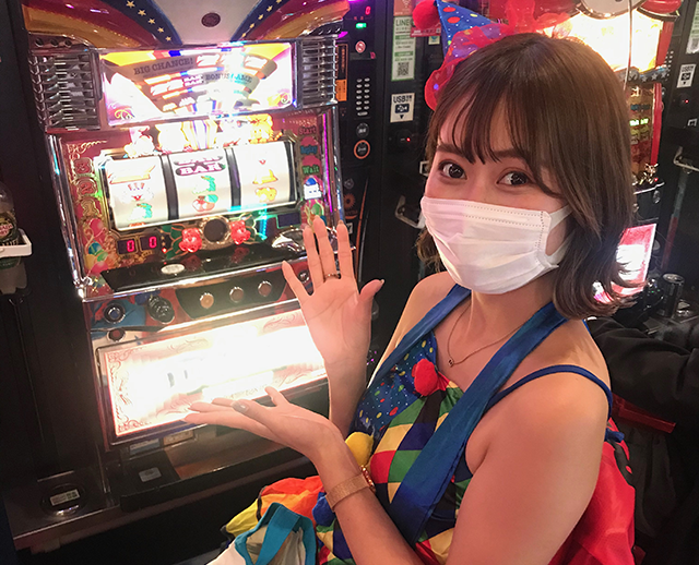 衣装チェンジで気合いの入った佑紀ちゃんは「マイジャグラーⅢ」に勝負を挑みます!