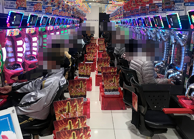 機種やスペックを問わず、さまざまな機種が楽しまれている様子のパチスロコーナーをチェック(σ≧∀≦)σ