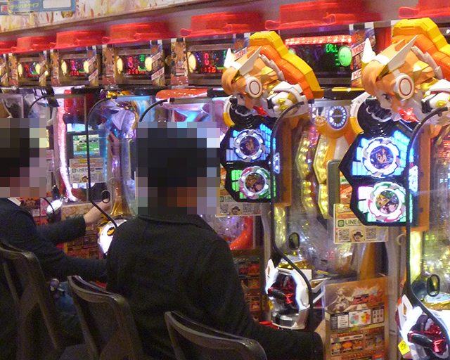 「Pフィーバー戦姫絶唱シンフォギア2」で遊技をおこなうプレイヤーも楽しげ!