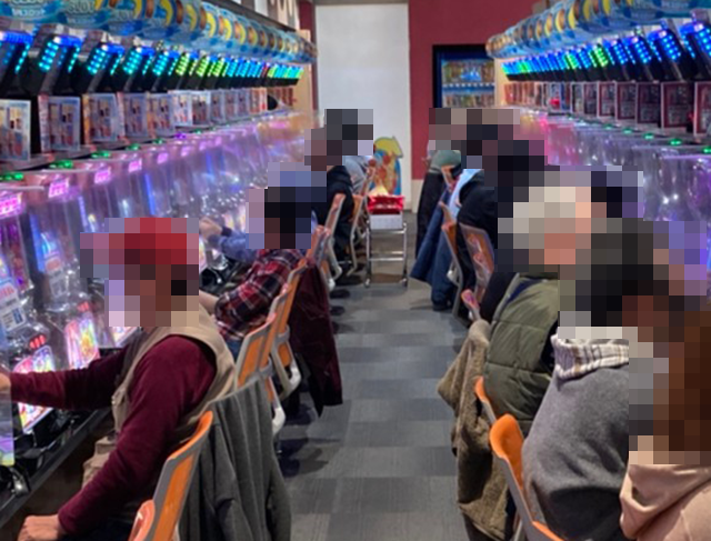 16時頃にパチスロのシマを進んでいくと、さまざまな機種で楽しそうなプレイヤーを確認。小役カウンターを使用している姿があるなど、それぞれが有意義な時間を過ごしているように思えた。