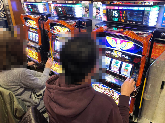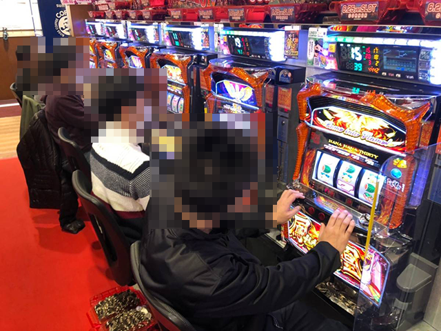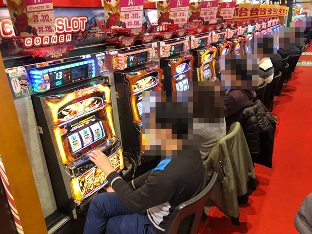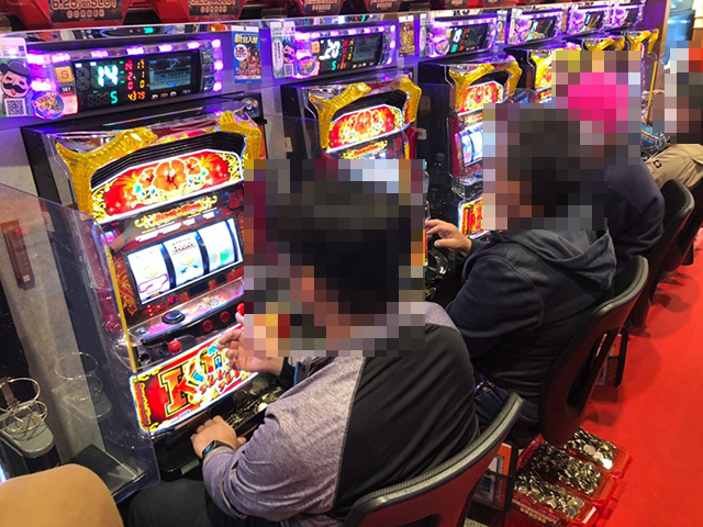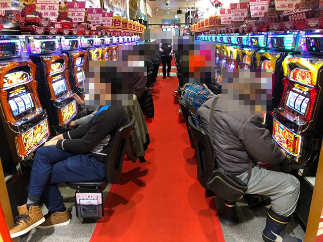 ホール内にはさまざまなスペックの機種があり、ハナハナシリーズは「ハナハナ鳳凰-30」と「グレートキングハナハナ-30」が6台ずつ設置されている。