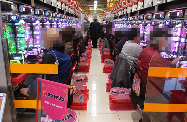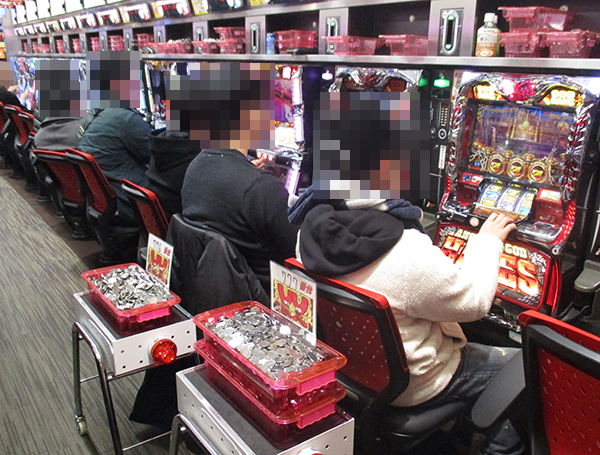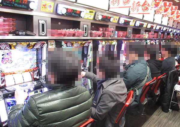 20円パチスロでは新台の「戦国乙女2〜深淵に輝く気高き将星〜」が満席状態。