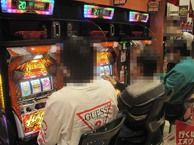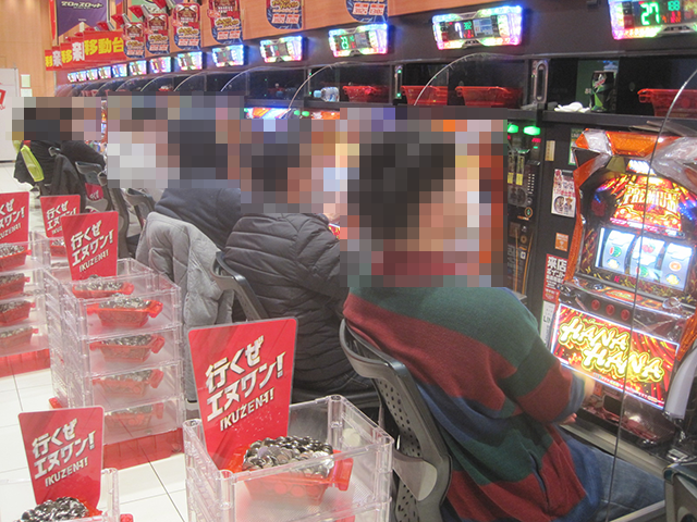 15時過ぎの「プレミアムハナハナ-30」は17台中11台が埋まっており、盛り上がりは稼働率を上回るほどに大きかった。