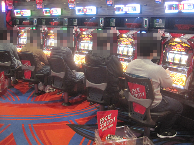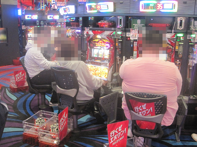 パチスロには曲線状になっているシマが多く、台間や通路が広くなっているため、のびのびと遊技をおこなえるように思えた。