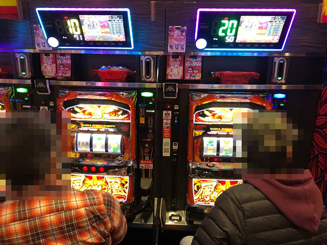 20台設置されている「ハナハナ鳳凰-30」も約6割の台が埋まっており、にぎやかな雰囲気に包まれていた。