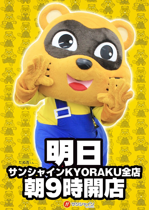 8月13日(土)サンシャインKYORAKU全店!朝9時開店!
