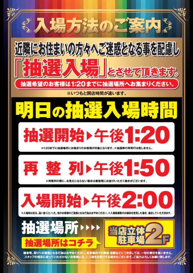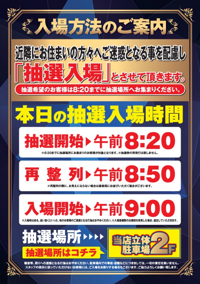 来たぜ週末!!朝9時開店!!入場抽選は8:20開始です!!