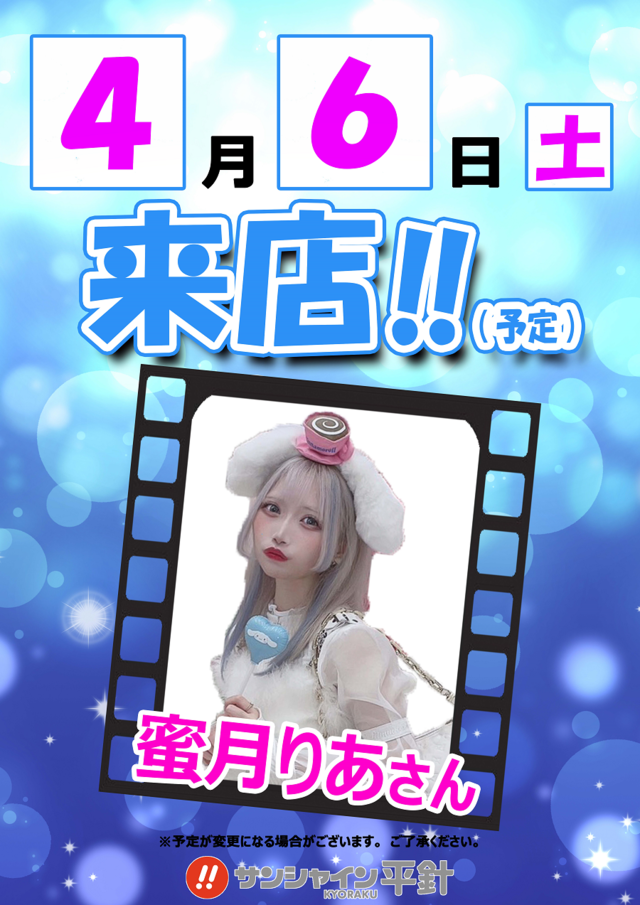 明日✨4月6日㈯朝9時開店✨蜜月りあさん来店予定💕💕
